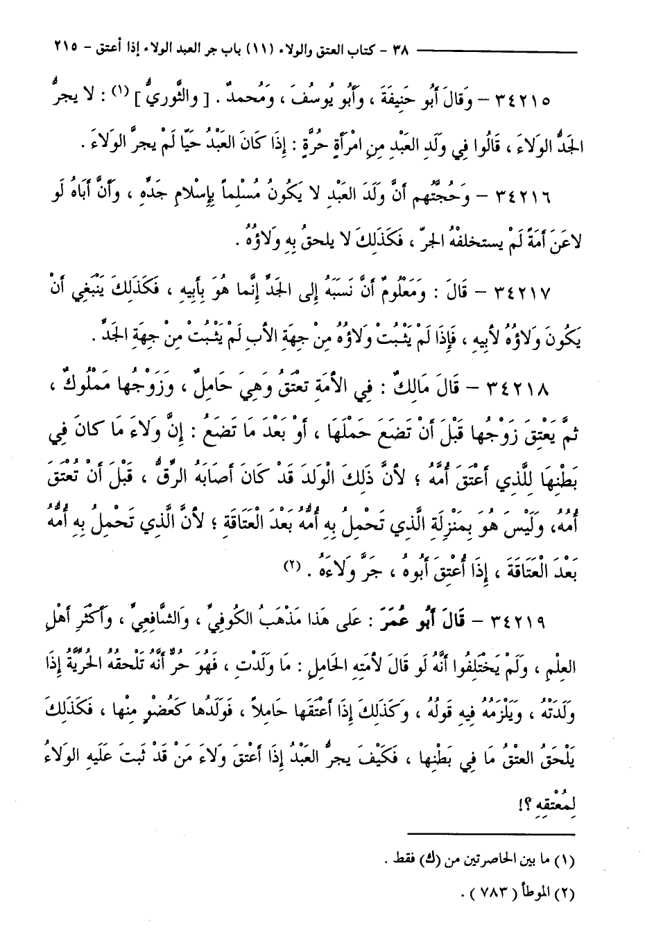 34215 - وَقَالَ أَبُو حَنِيفَةَ، وَأَبُو يُوسُفَ، وَمُحَمَّدٌ وَالثَّوْرِيُّ: لَا يَجُرُّ الْجَدُّ الْوَلَاءَ، قَالُوا فِي وَلَدِ الْعَبْدِ مِنِ امْرَأَةٍ حُرَّةٍ: إِذَا كَانَ الْعَبْدُ حَيًّا لَمْ يَجُرَّ الْوَلَاءَ.