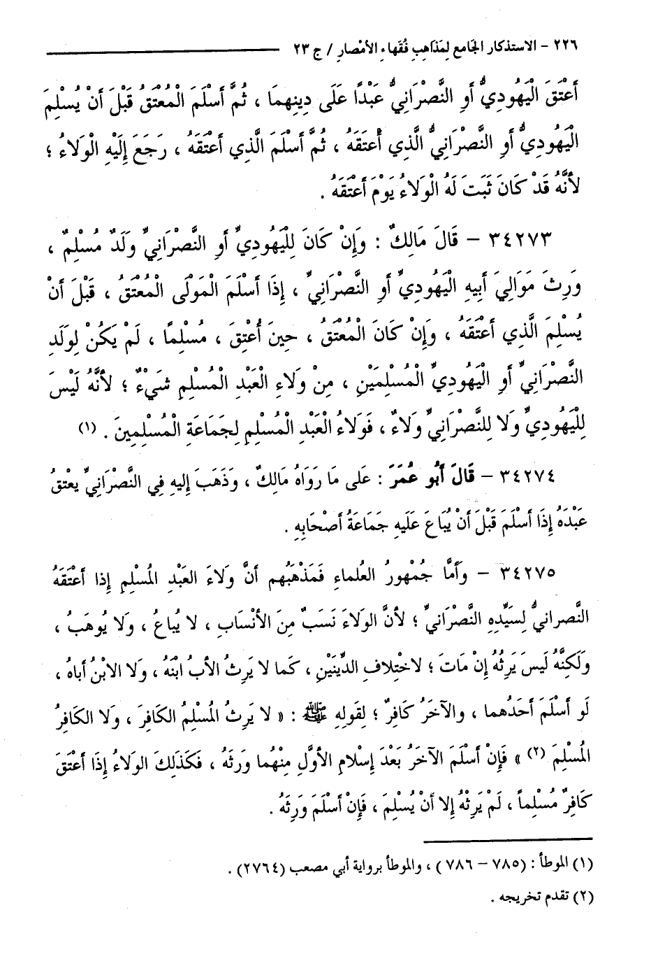 كتاب الاستذكار الجامع لمذاهب فقهاء الأمصار - ت: قلعجي (اسم الجزء: 23)