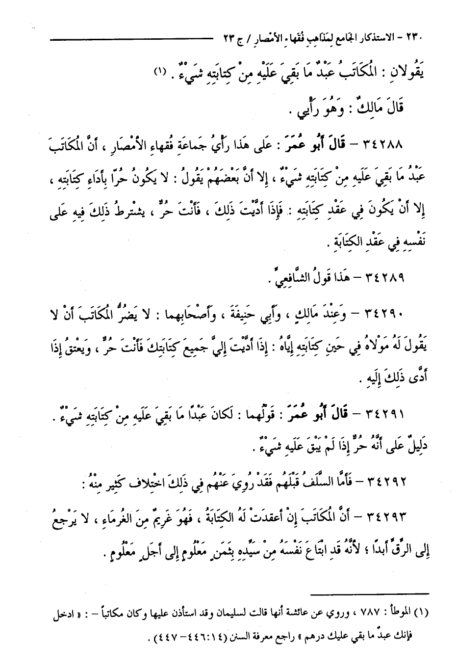 كتاب الاستذكار الجامع لمذاهب فقهاء الأمصار - ت: قلعجي (اسم الجزء: 23)