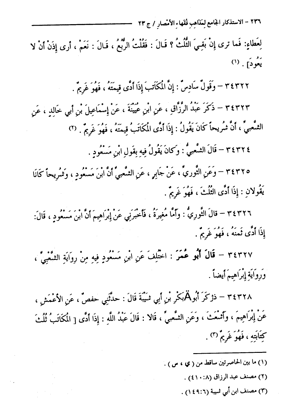 كتاب الاستذكار الجامع لمذاهب فقهاء الأمصار - ت: قلعجي (اسم الجزء: 23)