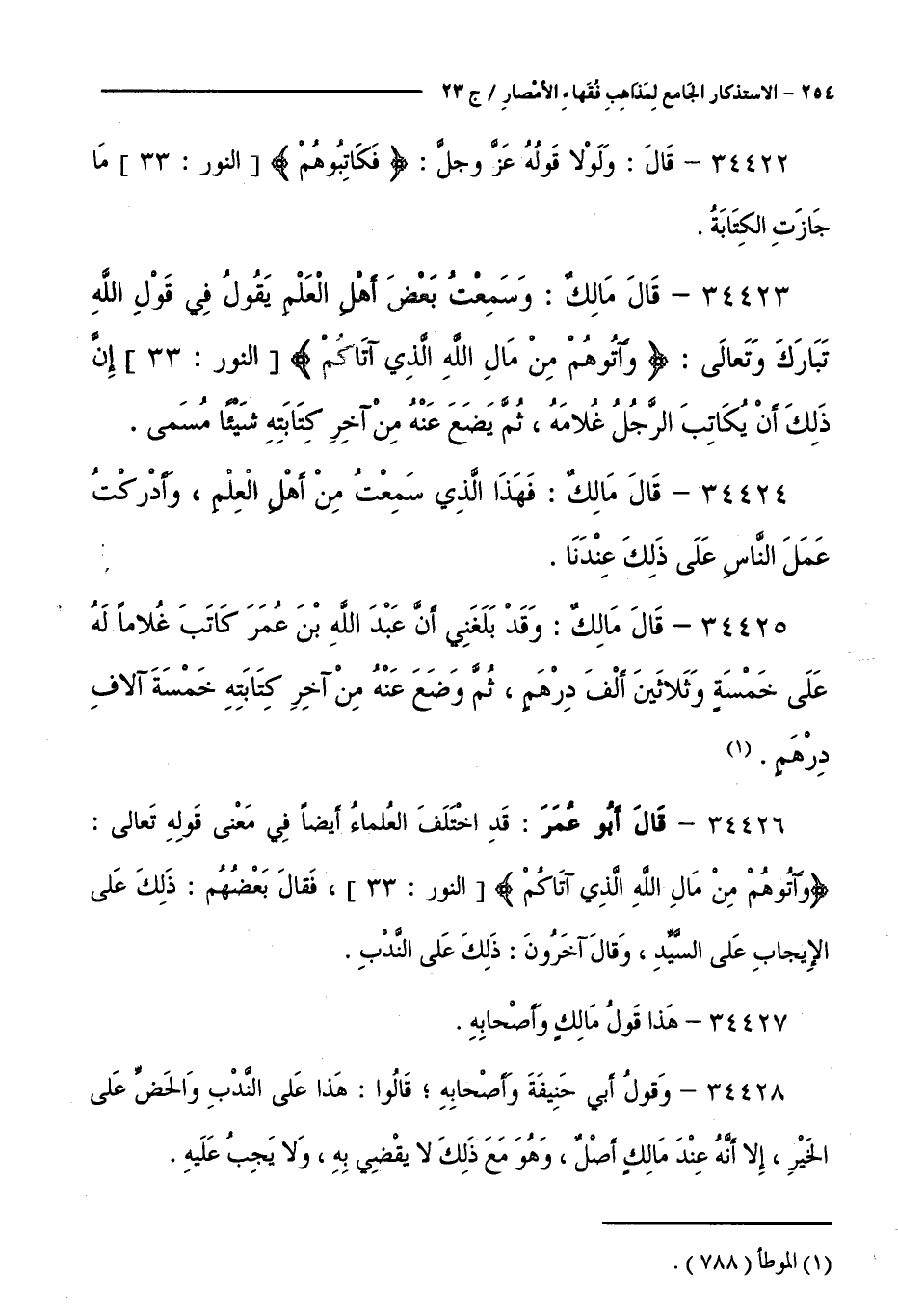 كتاب الاستذكار الجامع لمذاهب فقهاء الأمصار - ت: قلعجي (اسم الجزء: 23)