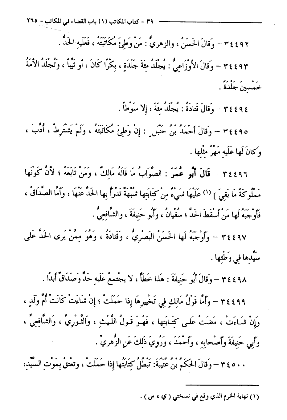 34492 - وَقَالَ الْحَسَنُ، وَالزُّهْرِيُّ: مَنْ وَطِئَ مُكَاتَبَتَهُ، فَعَلَيْهِ الْحَدُّ.