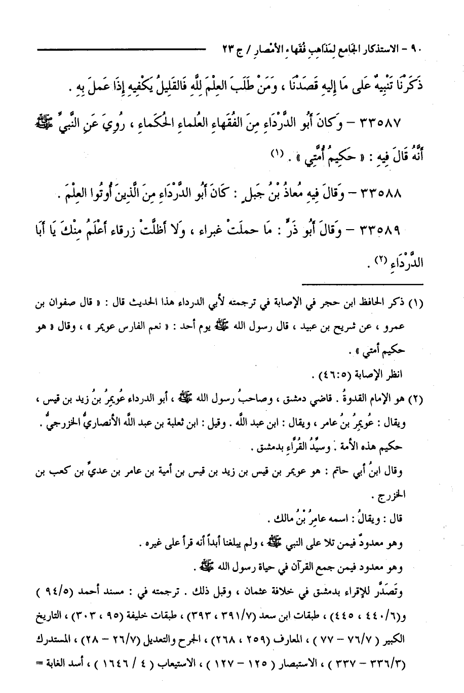 33588 - وَقَالَ فِيهِ مُعَاذُ بْنُ جَبَلٍ: كَانَ أَبُو الدَّرْدَاءِ مِنَ الَّذِينَ أُوتُوا الْعِلْمَ.