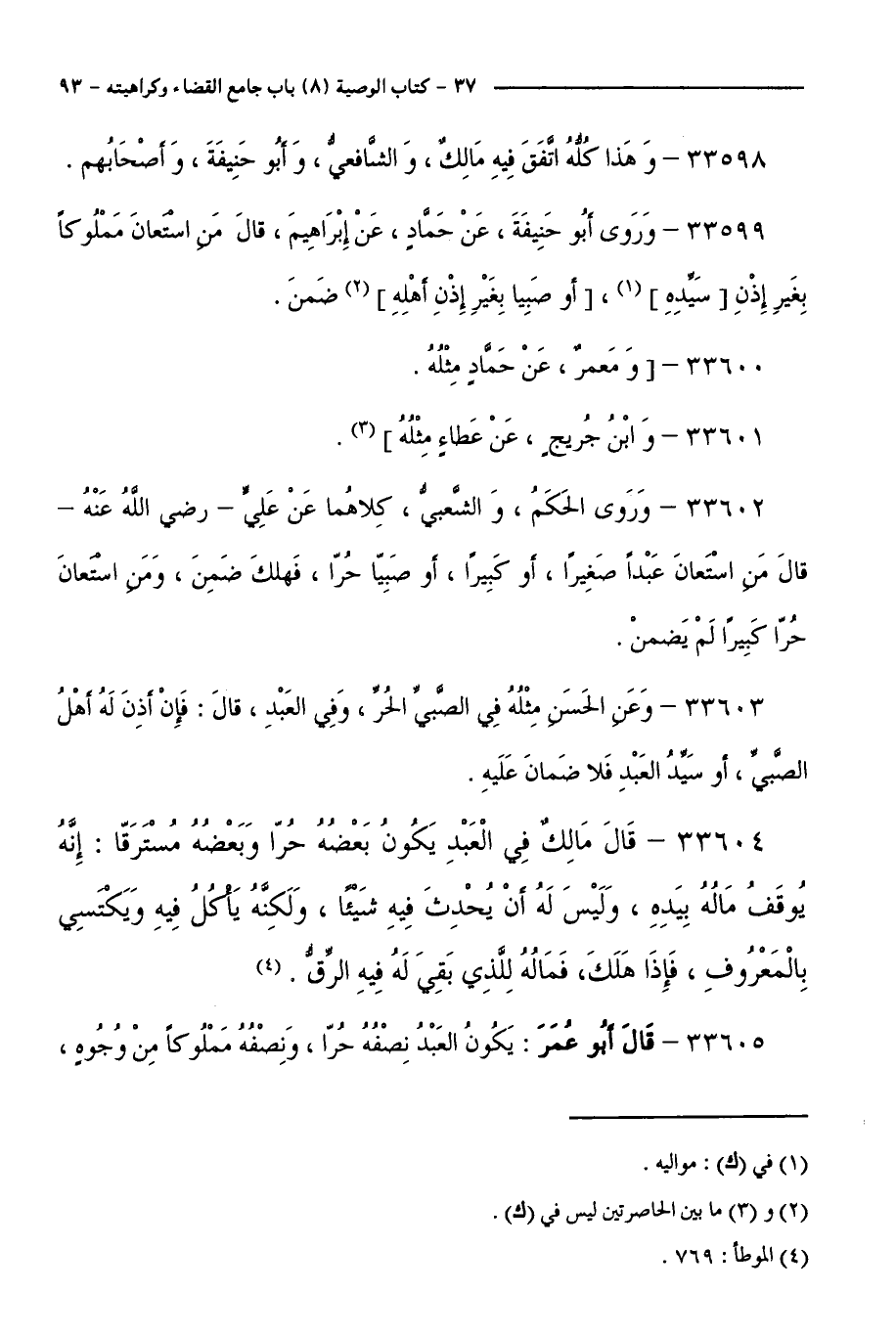 33599 - وَرَوَى أَبُو حَنِيفَةَ، عَنْ حَمَّادٍ، عَنْ إِبْرَاهِيمَ، قَالَ: مَنِ اسْتَعَانَ مَمْلُوكًا بِغَيْرِ إِذْنِ سَيِّدِهِ، أَوْ صَبِيًّا بِغَيْرِ إِذْنِ أَهْلِهِ ضَمِنَ.