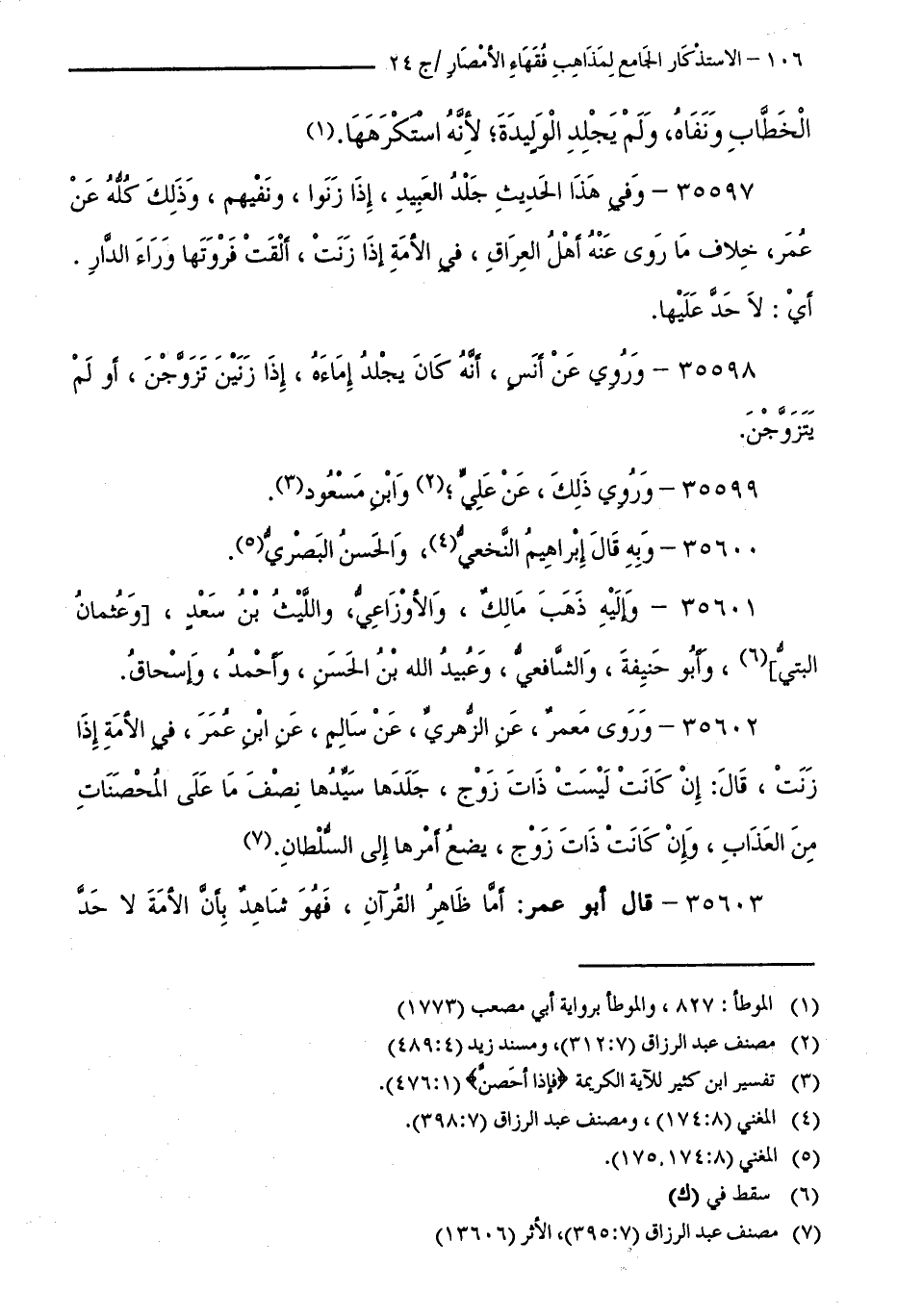 35601 - وَإِلَيْهِ ذَهَبَ مَالِكٌ، وَالْأَوْزَاعِيُّ، وَاللَّيْثُ بْنُ سَعْدٍ، وَعُثْمَانُ الْبَتِّيُّ، وَأَبُو حَنِيفَةَ، وَالشَّافِعِيُّ، وَعُبَيْدُ اللَّهِ بْنُ الْحَسَنِ، وَأَحْمَدُ، وَإِسْحَاقُ.