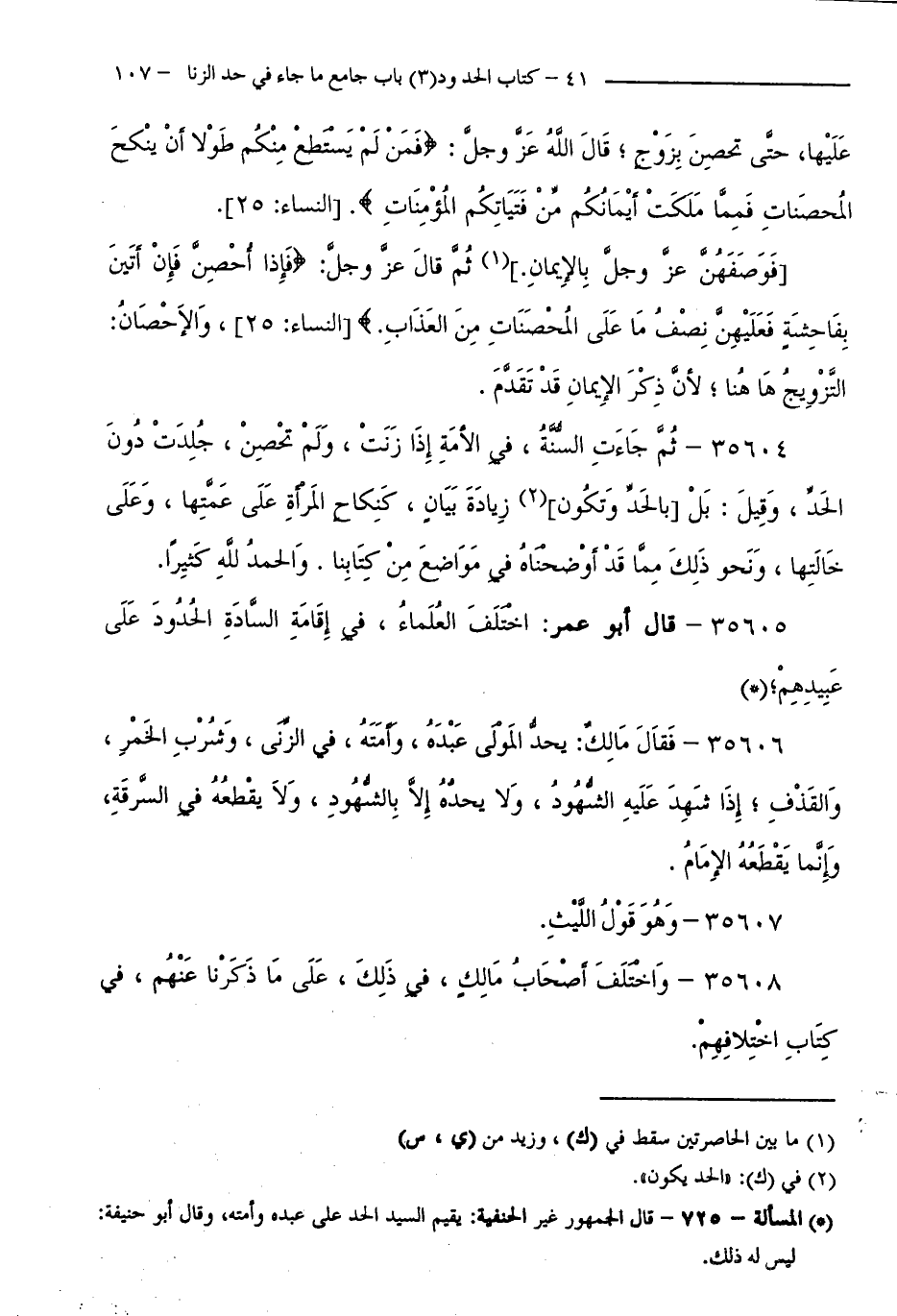 35604 - ثُمَّ جَاءَتِ السُّنَّةُ، فِي الْأَمَةِ إِذَا زَنَتْ، وَلَمْ تُحْصَنْ، جُلِدَتْ دُونَ الْحَدِّ، وَقِيلَ: بَلْ بِالْحَدِّ وَتَكُونُ زِيَادَةَ بَيَانٍ، كَنِكَاحِ الْمَرْأَةِ عَلَى عَمَّتِهَا، وَعَلَى خَالَتِهَا، وَنَحْوِ ذَلِكَ مِمَّا قَدْ أَوْضَحْنَاهُ فِي مَوَاضِعَ مِنْ كِتَابِنَا، وَالْحَمْدُ لِلَّهِ كَثِيرًا.