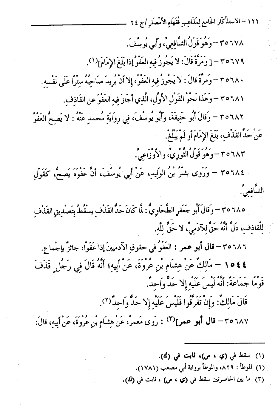 كتاب الاستذكار الجامع لمذاهب فقهاء الأمصار - ت: قلعجي (اسم الجزء: 24)