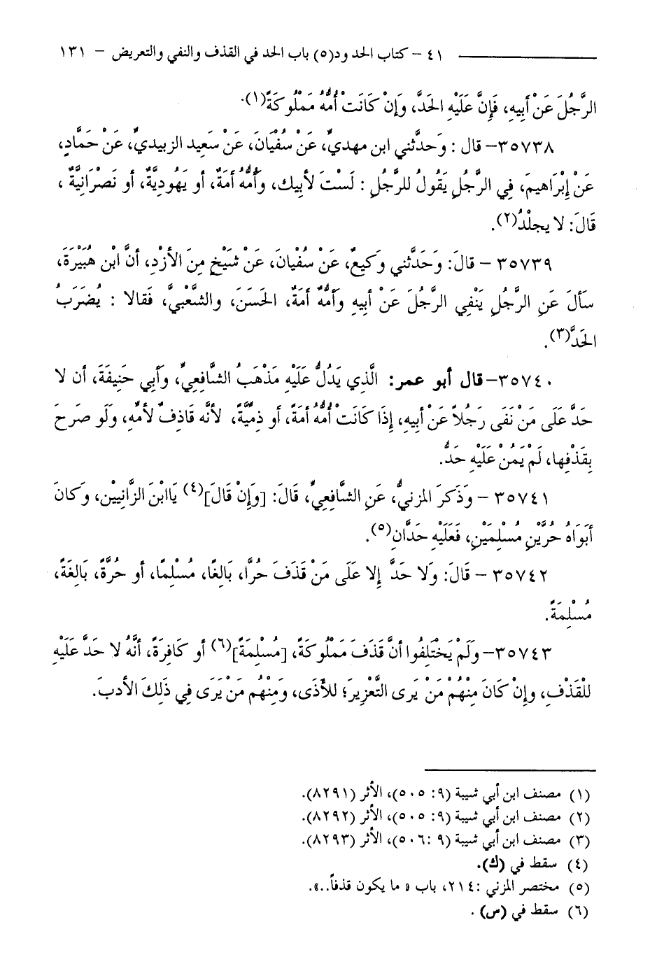35742 - قَالَ: وَلَا حَدَّ إِلَّا عَلَى مَنْ قَذَفَ حُرًّا، بَالِغًا، مُسْلِمًا، أَوْ حُرَّةً، بَالِغَةً، مُسْلِمَةً.