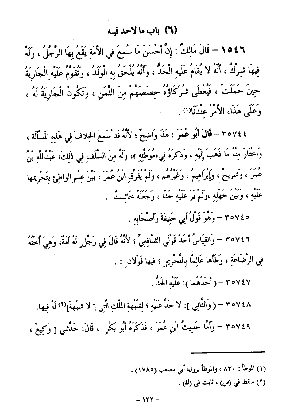 1546 - قَالَ مَالِكٌ: إِنَّ أَحْسَنَ مَا سُمِعَ فِي الْأَمَةِ يَقَعُ بِهَا الرَّجُلُ، وَلَهُ فِيهَا شِرْكٌ، أَنَّهُ لَا يُقَامُ عَلَيْهِ الْحَدُّ، وَأَنَّهُ يَلْحَقُ بِهِ الْوَلَدُ، وَتُقَوَّمُ عَلَيْهِ الْجَارِيَةُ حِينَ حَمَلَتْ، فَيُعْطَى شُرَكَاؤُهُ حِصَصَهُمْ مِنَ الثَّمَنِ، وَتَكُونُ الْجَارِيَةُ لَهُ، وَعَلَى هَذَا، الْأَمْرُ عِنْدَنَا.
