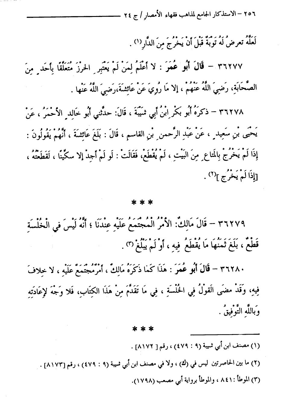 كتاب الاستذكار الجامع لمذاهب فقهاء الأمصار - ت: قلعجي (اسم الجزء: 24)