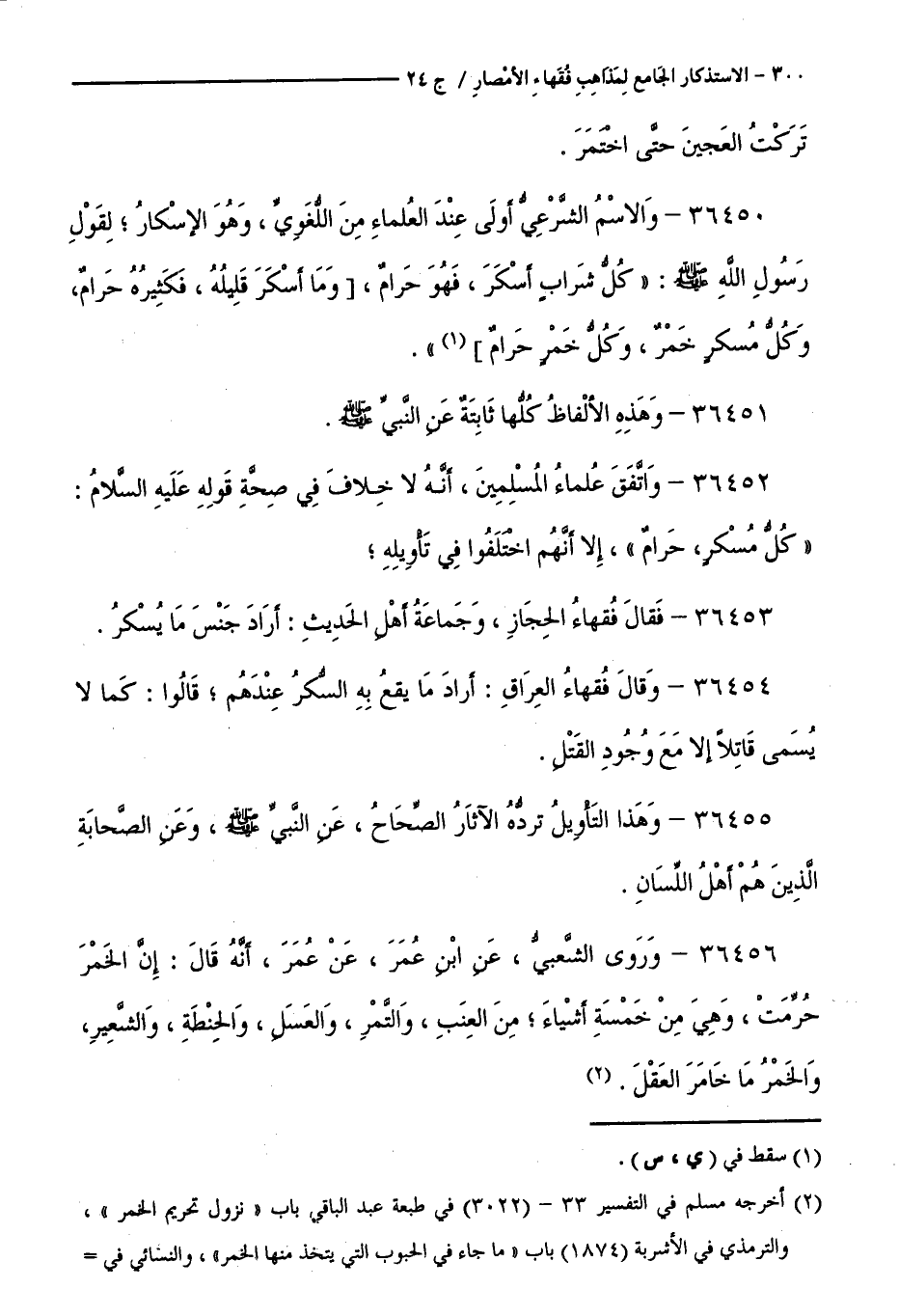 36453 - فَقَالَ فُقَهَاءُ الْحِجَازِ، وَجَمَاعَةُ أَهْلِ الْحَدِيثِ: أَرَادَ جِنْسَ مَا يُسْكِرُ.