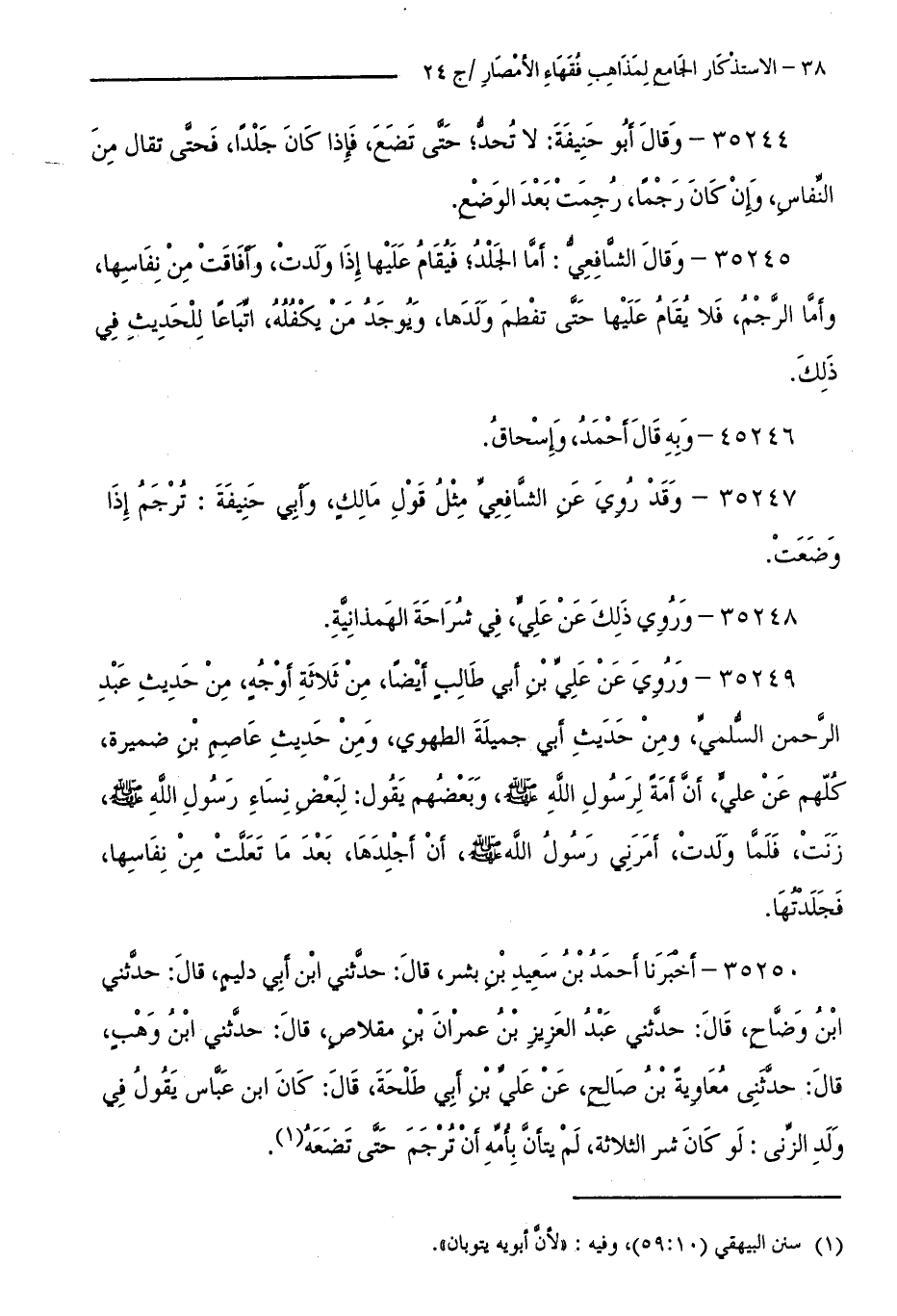 35249 - وَرُوِيَ عَنْ عَلِيِّ بْنِ أَبِي طَالِبٍ أَيْضًا، مِنْ ثَلَاثَةِ أَوْجُهٍ، مِنْ حَدِيثِ عَبْدِ الرَّحْمَنِ السُّلَمِيِّ، وَمِنْ حَدِيثِ أَبِي جَمِيلَةَ الطُّهَوِيِّ، وَمِنْ حَدِيثِ عِصَامِ بْنِ ضُمَيْرَةَ، كُلُّهُمْ عَنْ عَلِيٍّ، أَنَّ أَمَةً لِرَسُولِ اللَّهِ صَلَّى اللَّهُ عَلَيْهِ وَسَلَّمَ - وَبَعْضُهُمْ يَقُولُ: لِبَعْضِ نِسَاءِ رَسُولِ اللَّهِ صَلَّى اللَّهُ عَلَيْهِ وَسَلَّمَ - زَنَتْ، فَلَمَّا وَلَدَتْ، أَمَرَنِي رَسُولُ اللَّهِ صَلَّى اللَّهُ عَلَيْهِ وَسَلَّمَ أَنْ أَجْلِدَهَا بَعْدَ مَا تَعَلَّتْ مِنْ نِفَاسِهَا، فَجَلَدْتُهَا.
