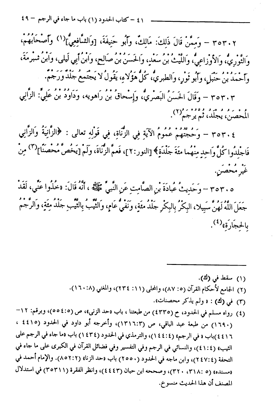 35305 - وَحَدِيثُ عُبَادَةَ بْنِ الصَّامِتِ عَنِ النَّبِيِّ صَلَّى اللَّهُ عَلَيْهِ وَسَلَّمَ، أَنَّهُ قَالَ: "خُذُوا عَنِّي، لَقَدْ جَعَلَ اللَّهُ لَهُنَّ سَبِيلًا، الْبِكْرُ بِالْبِكْرِ جَلْدُ مِائَةٍ، وَنَفْيُ عَامٍ، وَالثَّيِّبُ بِالثَّيِّبِ جَلْدُ مِائَةٍ، وَالرَّجْمُ بِالْحِجَارَةِ ".