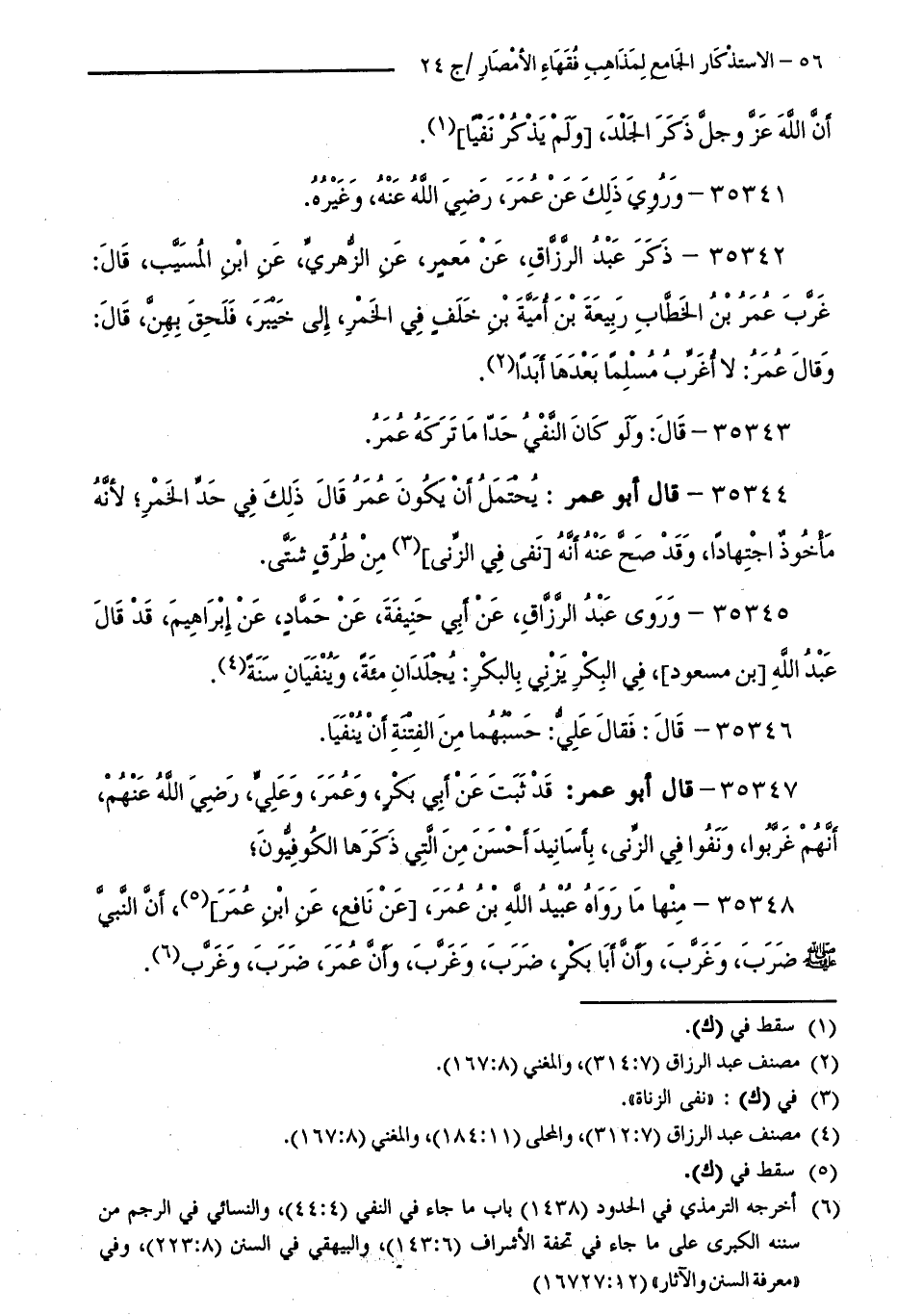 35347 - قَالَ أَبُو عُمَرَ: قَدْ ثَبَتَ عَنْ أَبِي بَكْرٍ، وَعُمَرَ، وَعَلِيٍّ - رَضِيَ اللَّهُ عَنْهُمْ - أَنَّهُمْ غَرَّبُوا وَنَفَوْا فِي الزِّنَا، بِأَسَانِيدَ أَحْسَنَ مِنَ الَّتِي ذَكَرَهَا الْكُوفِيُّونَ
