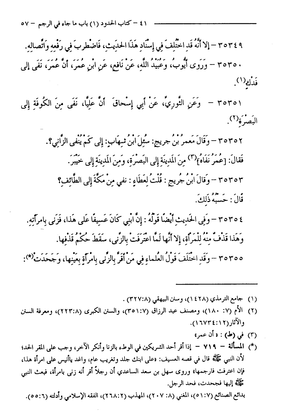 35352 - وَقَالَ مَعْمَرٌ، وَابْنُ جُرَيْجٍ: سُئِلَ ابْنُ شِهَابٍ: إِلَى كَمْ يُنْفَى الزَّانِي ؟. فَقَالَ: عُمَرُ نَفَاهُ مِنَ الْمَدِينَةِ إِلَى الْبَصْرَةِ، وَمِنَ الْمَدِينَةِ إِلَى خَيْبَرَ.