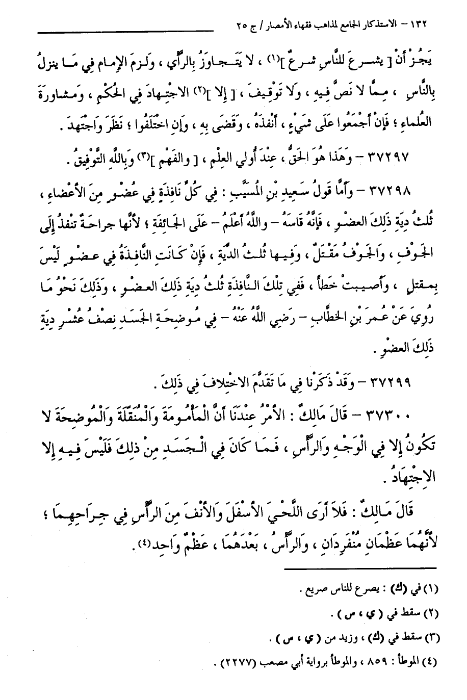 37300 - قَالَ مَالِكٌ: الْأَمْرُ عِنْدَنَا أَنَّ الْمَأْمُومَةَ وَالْمُنَقِّلَةَ وَالْمُوضِحَةَ لَا تَكُونُ إِلَّا فِي الْوَجْهِ وَالرَّأْسِ، فَمَا كَانَ فِي الْجَسَدِ مِنْ ذَلِكَ فَلَيْسَ فِيهِ إِلَّا الِاجْتِهَادُ.