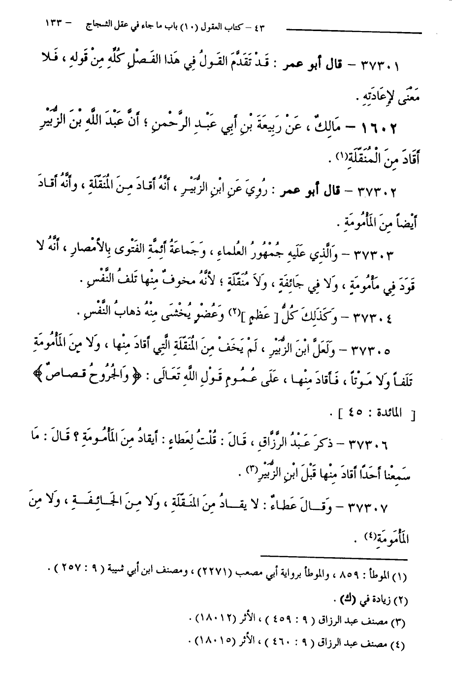 37302 - قَالَ أَبُو عُمَرَ: رُوِيَ عَنِ ابْنِ الزُّبَيْرِ، أَنَّهُ أَقَادَ مِنَ الْمُنَقِّلَةِ، وَأَنَّهُ أَقَادَ أَيْضًا مِنَ الْمَأْمُومَةِ.