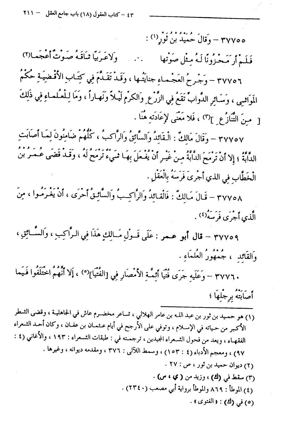 37759 - قَالَ أَبُو عُمَرَ: عَلَى قَوْلِ مَالِكٍ هَذَا فِي الرَّاكِبِ، وَالسَّائِقِ، وَالْقَائِدِ، جُمْهُورُ الْعُلَمَاءِ.
