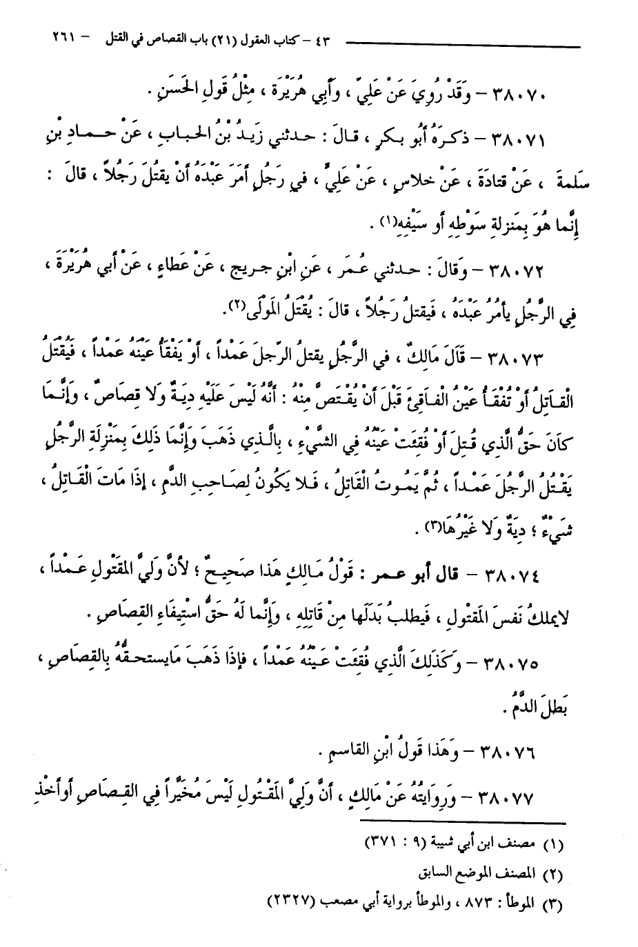 38077 - وَرِوَايَتُهُ عَنْ مَالِكٍ، أَنْ وَلِيَّ الْمَقْتُولِ لَيْسَ مُخَيَّرًا فِي الْقِصَاصِ أَوْ أَخْذِ