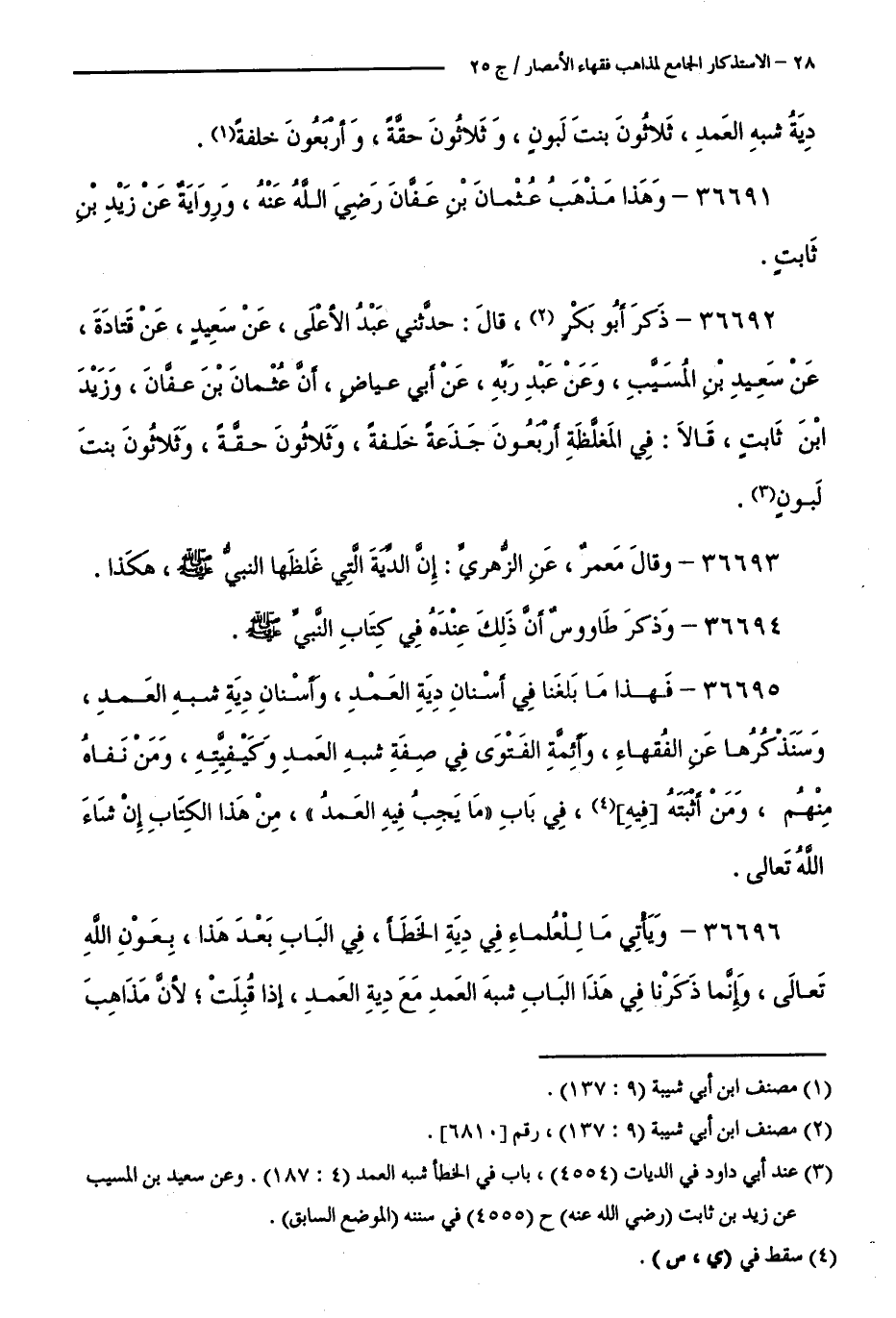 36695 - فَهَذَا مَا بَلَغَنَا فِي أَسْنَانِ دِيَةِ الْعَمْدِ، وَأَسْنَانِ دِيَةِ شِبْهِ الْعَمْدِ، وَسَنَذْكُرُهَا عَنِ الْفُقَهَاءِ، وَأَئِمَّةِ الْفَتْوَى فِي صِفَةِ شِبْهِ الْعَمْدِ وَكَيْفِيَّتِهِ، وَمَنْ نَفَاهُ مِنْهُمْ، وَمَنْ أَثْبَتَهُ فِيهِ، فِي بَابِ " مَا يَجِبُ فِيهِ الْعَمْدُ " مِنْ هَذَا الْكِتَابِ إِنْ شَاءَ اللَّهُ تَعَالَى.
