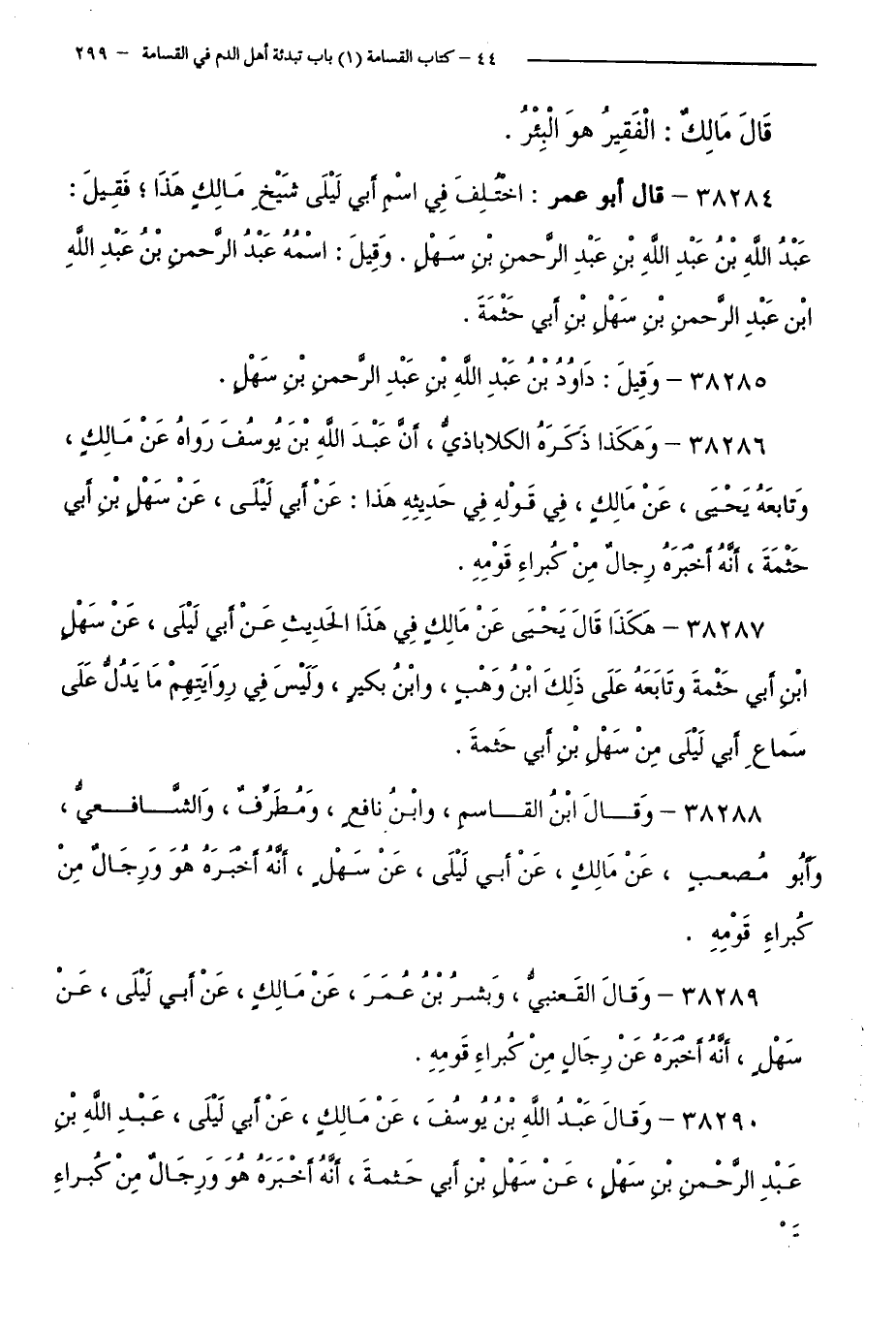 38289 - وَقَالَ الْقَعْنَبِيُّ، وَبِشْرُ بْنُ عُمَرَ، عَنْ مَالِكٍ، عَنْ أَبِي لَيْلَى، عَنْ سَهْلٍ، أَنَّهُ أَخْبَرَهُ عَنْ رِجَالٍ مِنْ كُبَرَاءِ قَوْمِهِ.