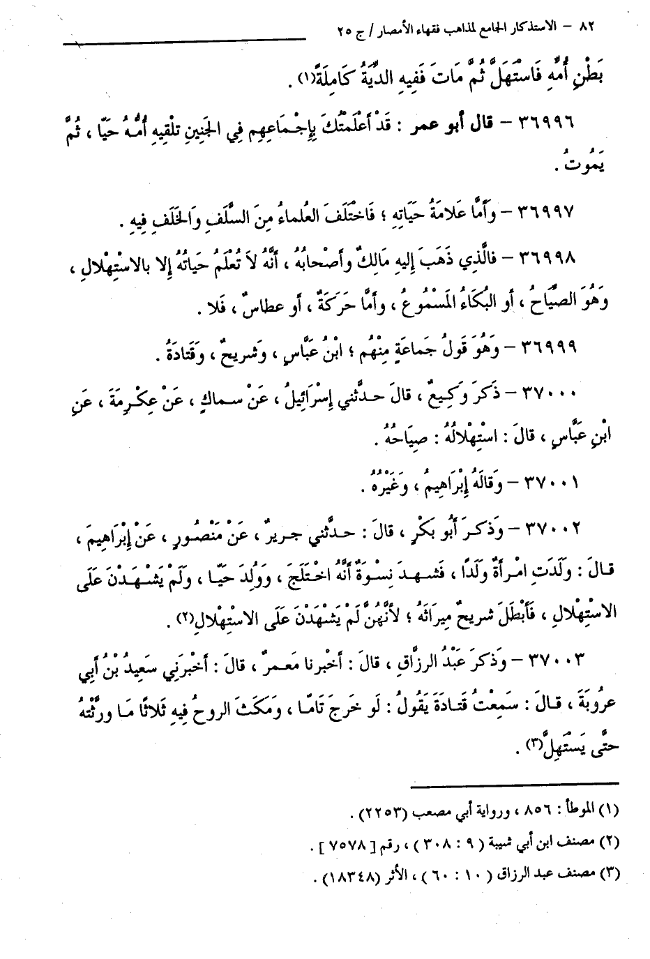 36996 - قَالَ أَبُو عُمَرَ: قَدْ أَعْلَمْتُكَ بِإِجْمَاعِهِمْ فِي الْجَنِينِ تُلْقِيهِ أُمُّهُ حَيًّا، ثُمَّ يَمُوتُ.