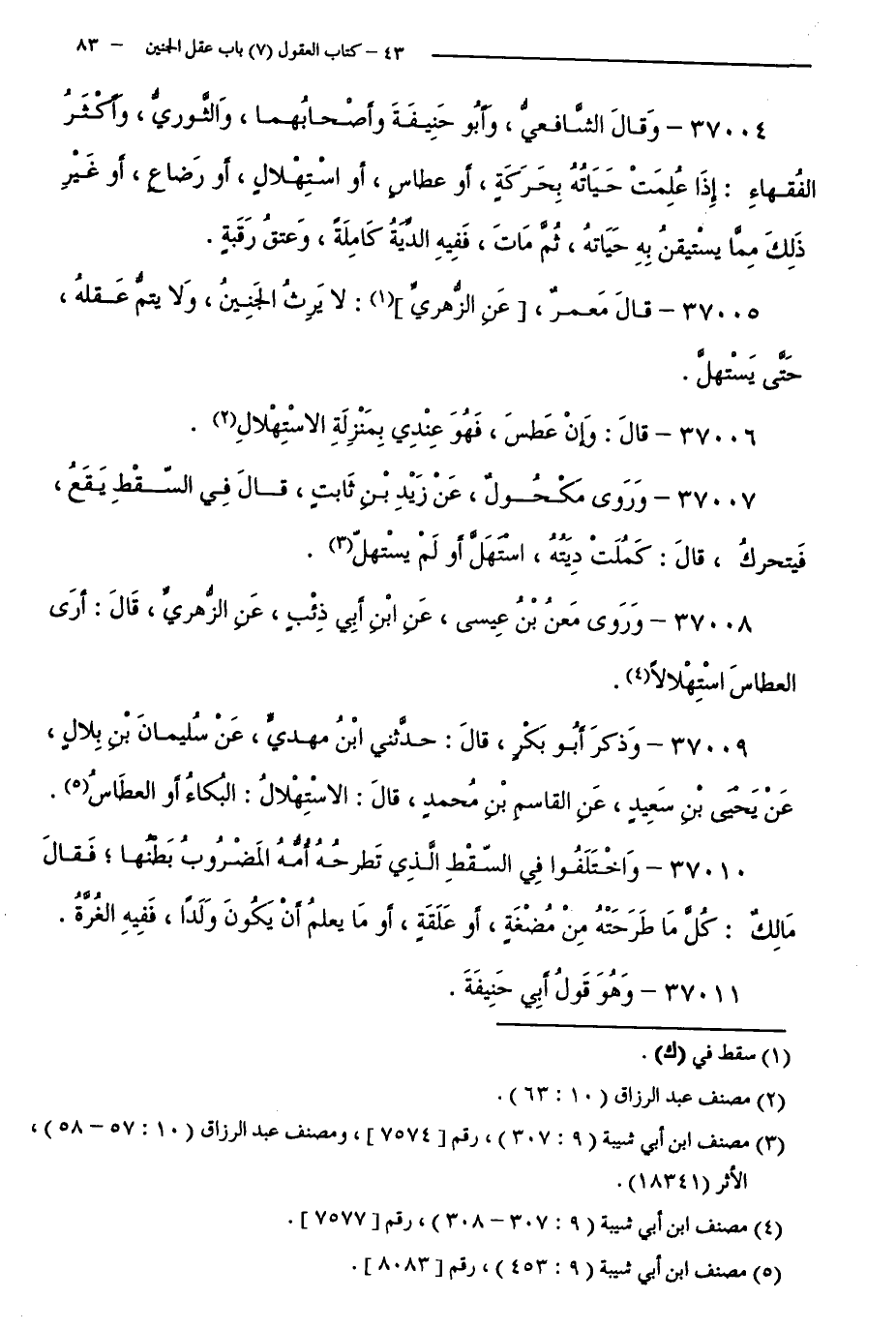 37007 - وَرَوَى مَكْحُولٌ، عَنْ زَيْدِ بْنِ ثَابِتٍ، قَالَ فِي السَّقْطِ يَقَعُ، فَيَتَحَرَّكُ، قَالَ: كَمُلَتْ دِيَتُهُ، اسْتَهَلَّ أَوْ لَمْ يَسْتَهِلَّ.