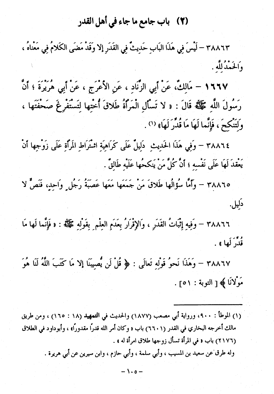 38863 - لَيْسَ فِي هَذَا الْبَابِ حَدِيثٌ فِي الْقَدَرِ إِلَّا وَقَدْ مَضَى الْكَلَامُ فِي مَعْنَاهُ، وَالْحَمْدُ لِلَّهِ.