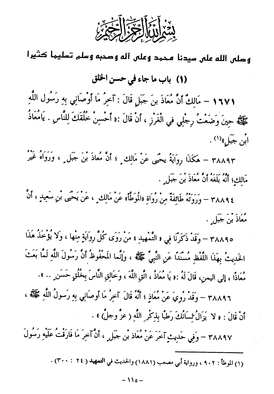 38893 - هَكَذَا رِوَايَةُ يَحْيَى عَنْ مَالِكٍ أَنَّ مُعَاذَ بْنَ جَبَلٍ، وَرَوَاهُ غَيْرُ مَالِكٍ أَنَّهُ بَلَغَهُ أَنَّ مُعَاذَ بْنَ جَبَلٍ.