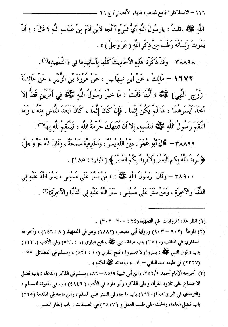38899 - قَالَ أَبُو عُمَرَ: دِينُ اللَّهِ يُسْرٌ، وَالْحَنِيفِيَّةُ سَمْحَةٌ، وَقَالَ اللَّهُ - عَزَّ وَجَلَّ -: "يُرِيدُ اللَّهُ بِكُمُ الْيُسْرَ وَلَا يُرِيدُ بِكُمُ الْعُسْرَ " [ الْبَقَرَةِ: 185 ].