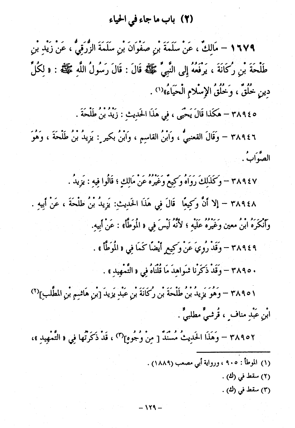 38946 - وَقَالَ الْقَعْنَبِيُّ، وَابْنُ الْقَاسِمِ، وَابْنُ بُكَيْرٍ: يَزِيدُ بْنُ طَلْحَةَ، وَهُوَ الصَّوَابُ.