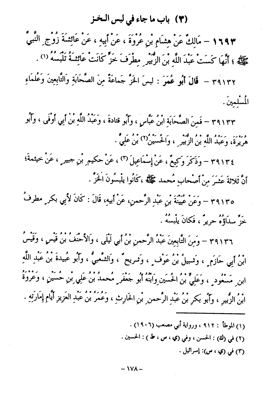 39132 - قَالَ أَبُو عُمَرَ: لَبِسَ الْخَزَّ جَمَاعَةٌ مِنَ الصَّحَابَةِ وَالتَّابِعِينَ وَعُلَمَاءِ الْمُسْلِمِينَ.