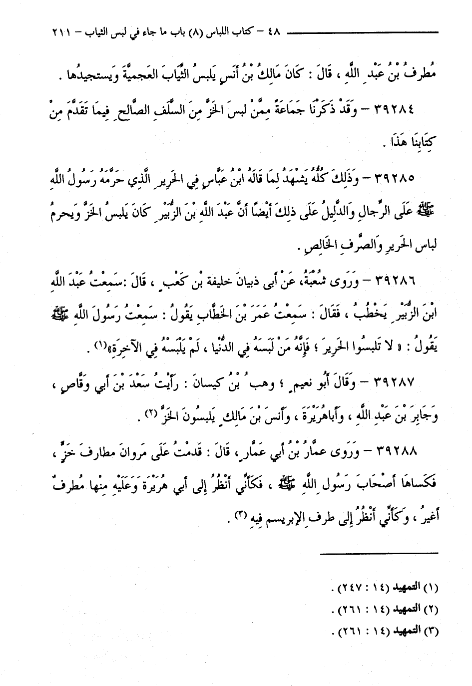 39284 - وَقَدْ ذَكَرْنَا جَمَاعَةً مِمَّنْ لَبِسَ الْخَزَّ مِنَ السَّلَفِ الصَّالِحِ فِيمَا تَقَدَّمَ مِنْ كِتَابِنَا هَذَا.