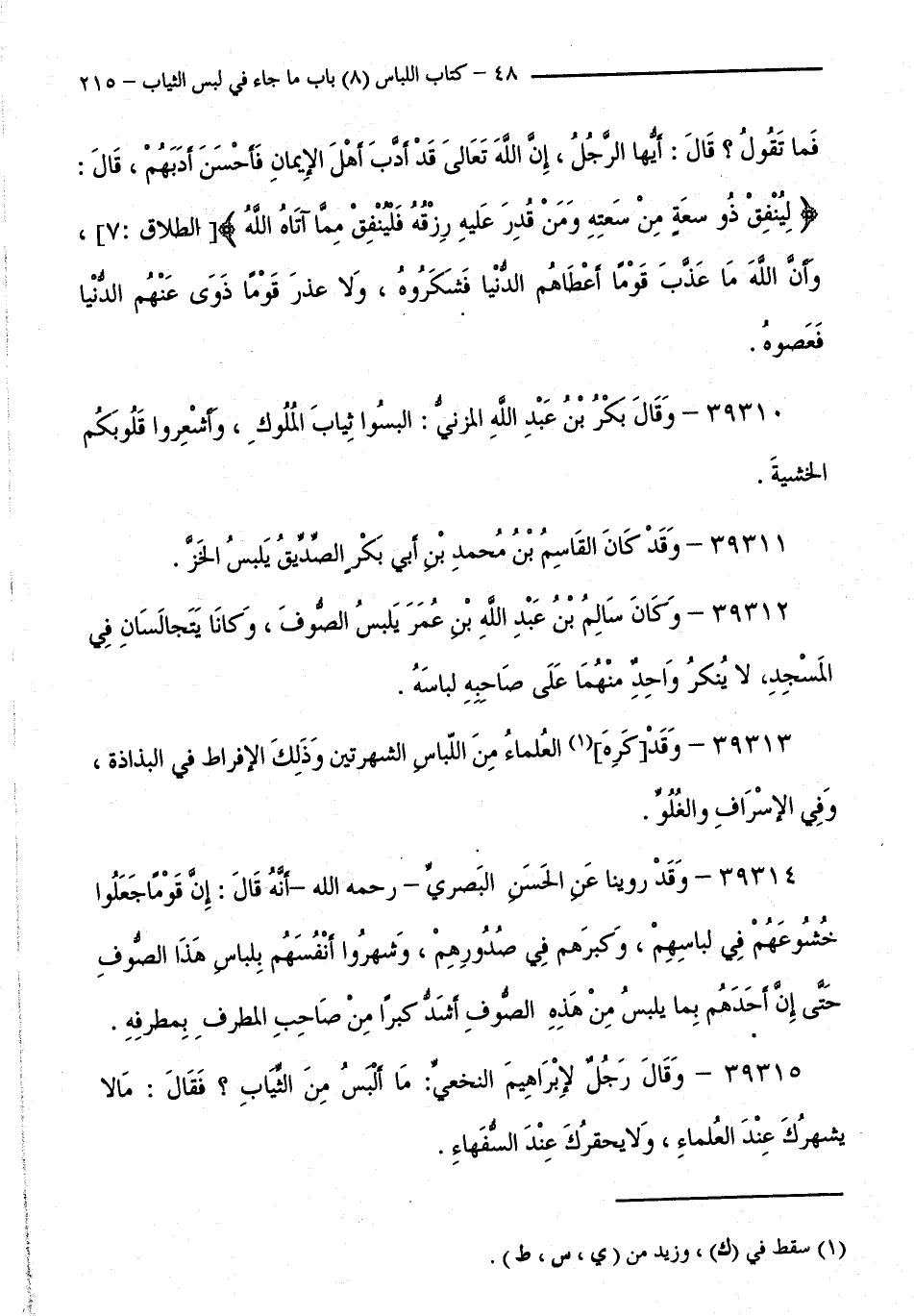 39311 - وَقَدْ كَانَ الْقَاسِمُ بْنُ مُحَمَّدِ بْنِ أَبِي بَكْرٍ الصِّدِّيقُ يَلْبَسُ الْخَزَّ.