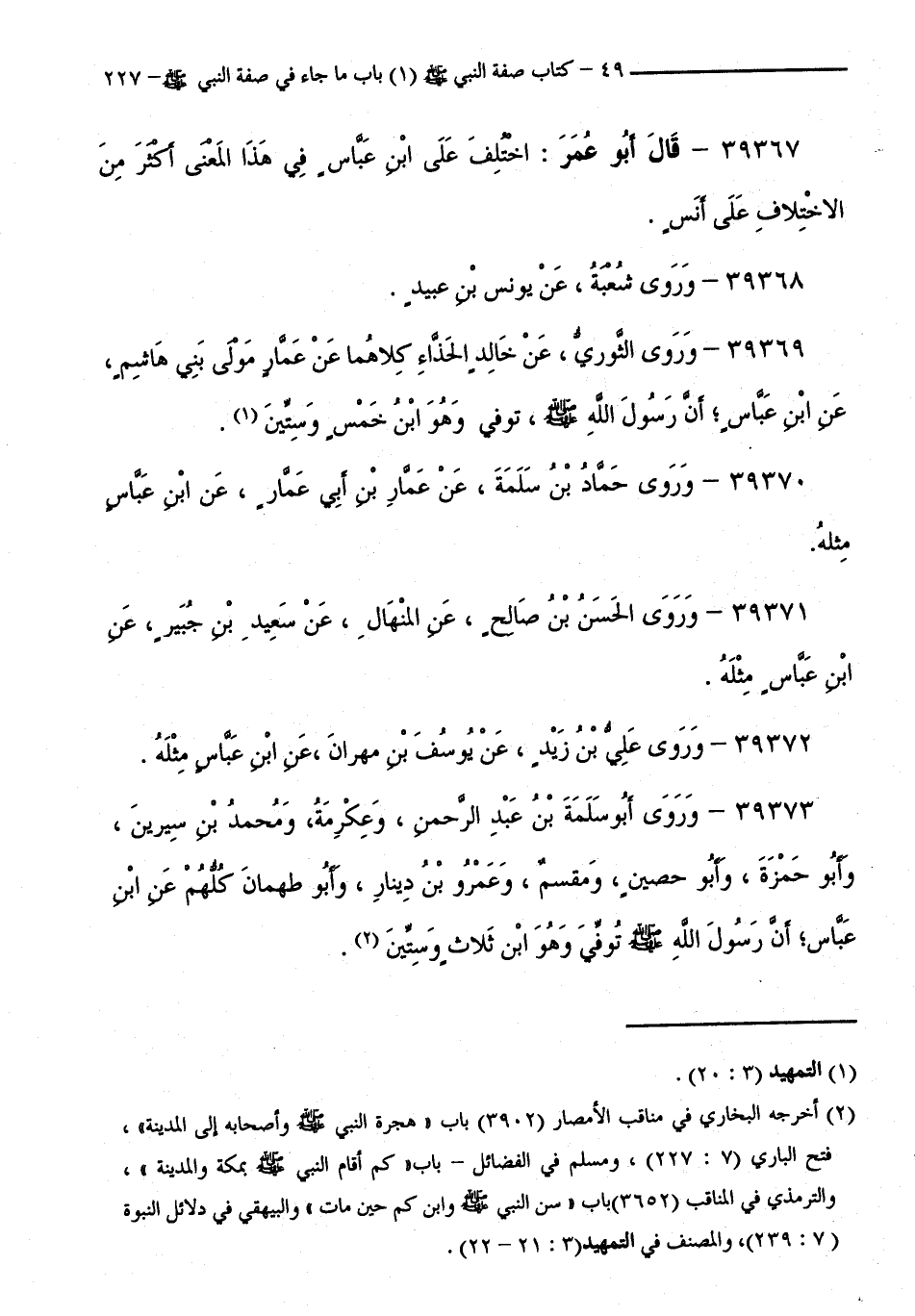 39373 - وَرَوَى أَبُو سَلَمَةَ بْنُ عَبْدِ الرَّحْمَنِ، وَعِكْرِمَةُ، وَمُحَمَّدُ بْنُ سِيرِينَ، وَأَبُو حَمْزَةَ، وَأَبُو حُصَيْنٍ، وَعَمْرُو بْنُ دِينَارٍ، وَأَبُو طَهْمَانَ كُلُّهُمْ عَنِ ابْنِ عَبَّاسٍأَنَّ رَسُولَ اللَّهِ صَلَّى اللَّهُ عَلَيْهِ وَسَلَّمَ تُوُفِّيَ وَهُوَ ابْنُ ثَلَاثٍ وَسِتِّينَ.