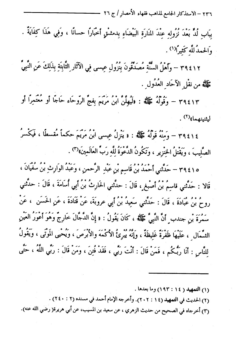 39413 - وَقَوْلُهُ صَلَّى اللَّهُ عَلَيْهِ وَسَلَّمَ: "لَيُهِلَنَّ ابْنُ مَرْيَمَ بِفَجِّ الرَّوْحَاءِ حَاجًّا أَوْ مُعْتَمِرًا أَوْ لَيُثَنِّيَنَّهُمَا ".