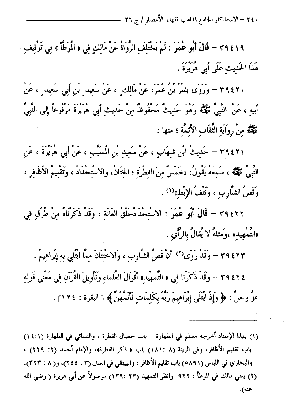 كتاب الاستذكار الجامع لمذاهب فقهاء الأمصار - ت: قلعجي (اسم الجزء: 26)
