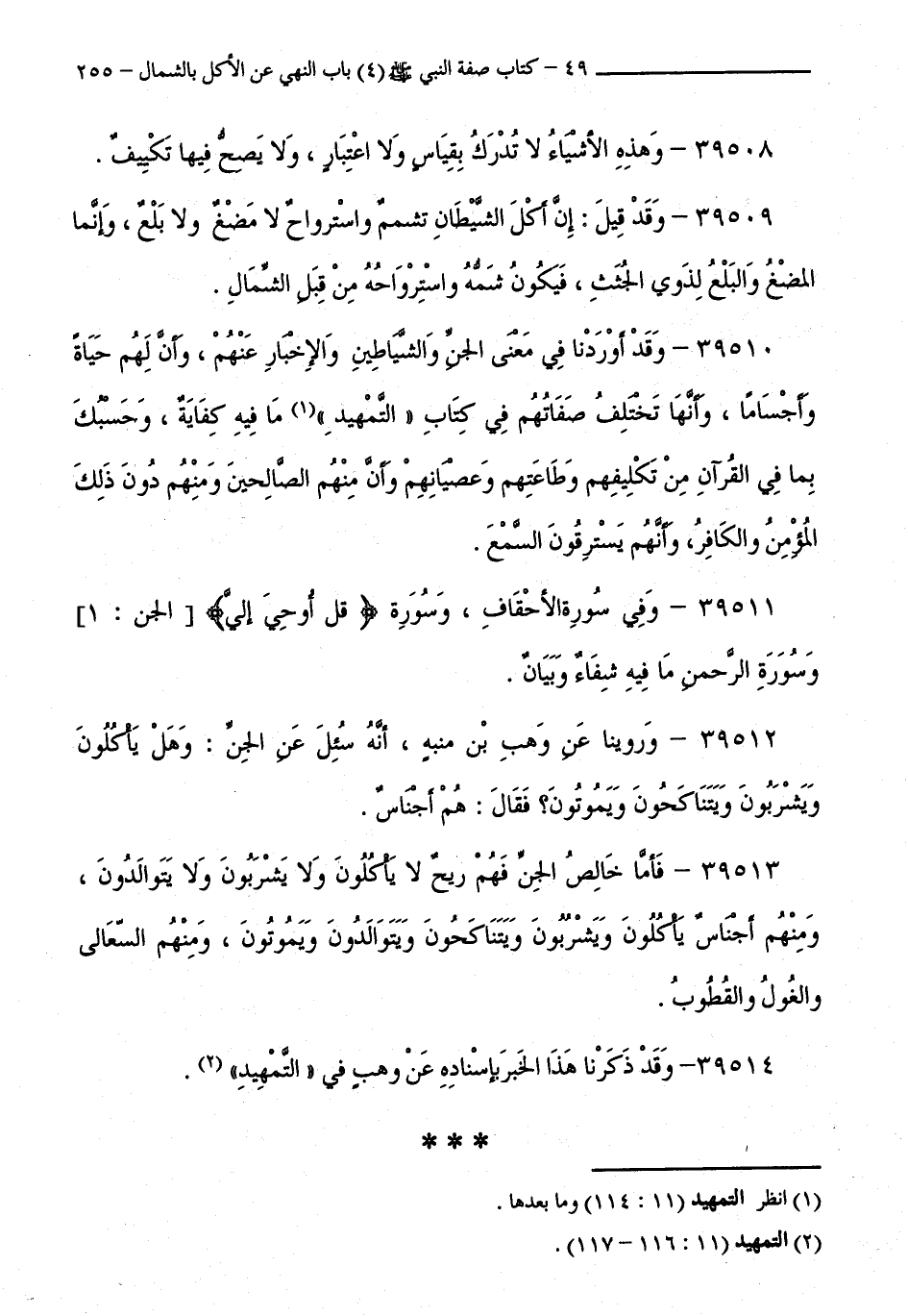 39512 - وَرُوِّينَا عَنْ وَهْبِ بْنِ مُنَبِّهٍ، أَنَّهُ سُئِلَ عَنِ الْجِنِّ: وَهَلْ يَأْكُلُونَ وَيَشْرَبُونَ وَيَتَنَاكَحُونَ وَيَمُوتُونَ ؟ فَقَالَ: هُمْ أَجْنَاسٌ.