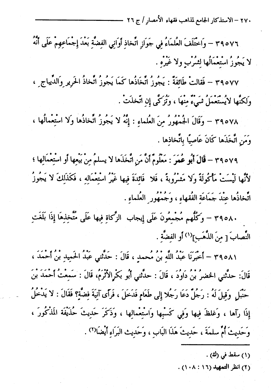 كتاب الاستذكار الجامع لمذاهب فقهاء الأمصار - ت: قلعجي (اسم الجزء: 26)