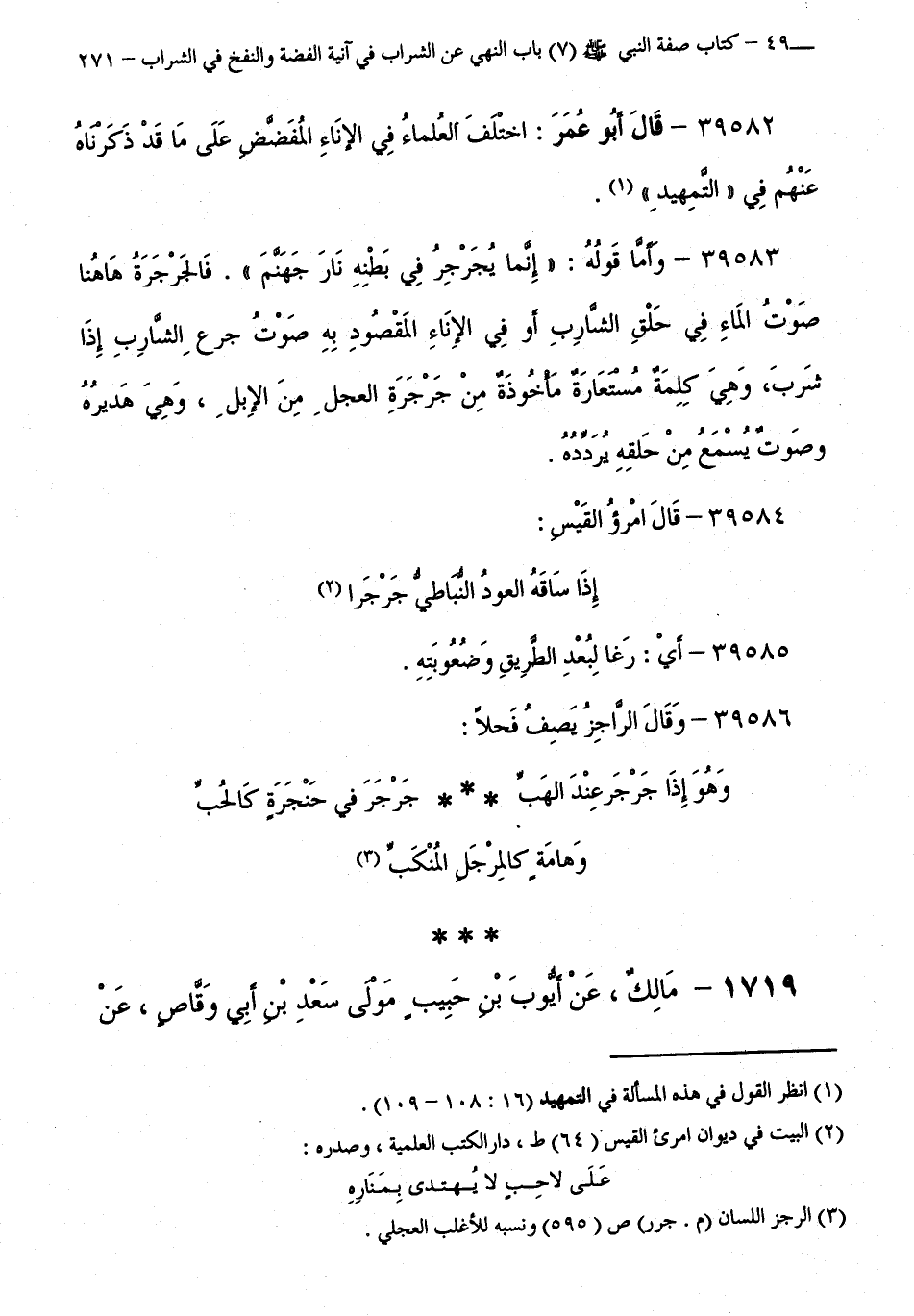 39582 - قَالَ أَبُو عُمَرَ: اخْتَلَفَ الْعُلَمَاءُ فِي الْإِنَاءِ الْمُفَضَّضِ عَلَى مَا قَدْ ذَكَرْنَاهُ عَنْهُمْ فِي " التَّمْهِيدِ ".