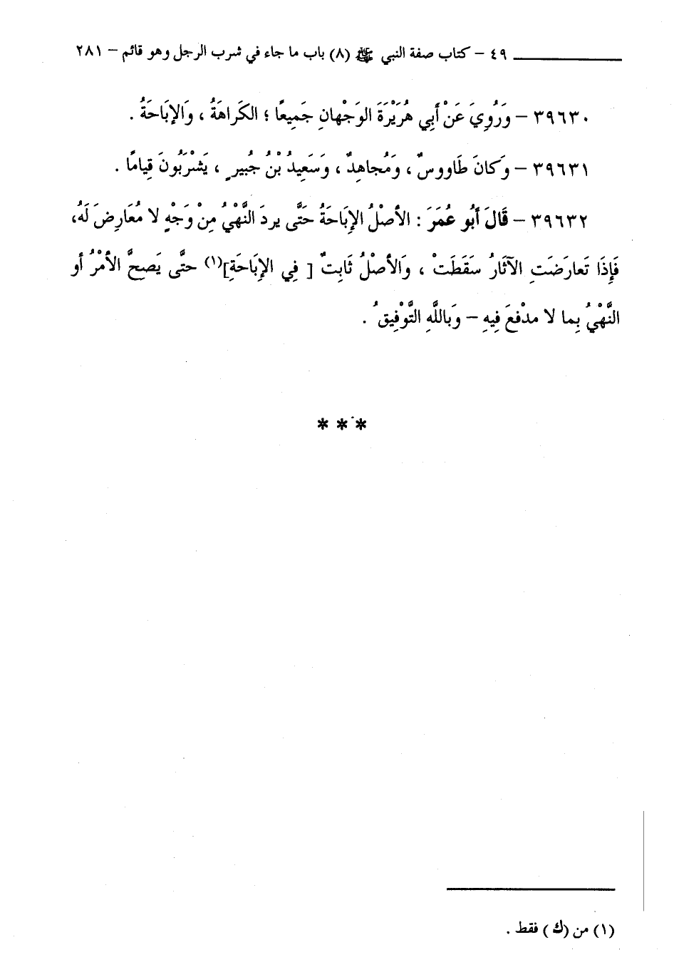 39631 - وَكَانَ طَاوُسٌ، وَمُجَاهِدٌ، وَسَعِيدُ بْنُ جُبَيْرٍ، يَشْرَبُونَ قِيَامًا.