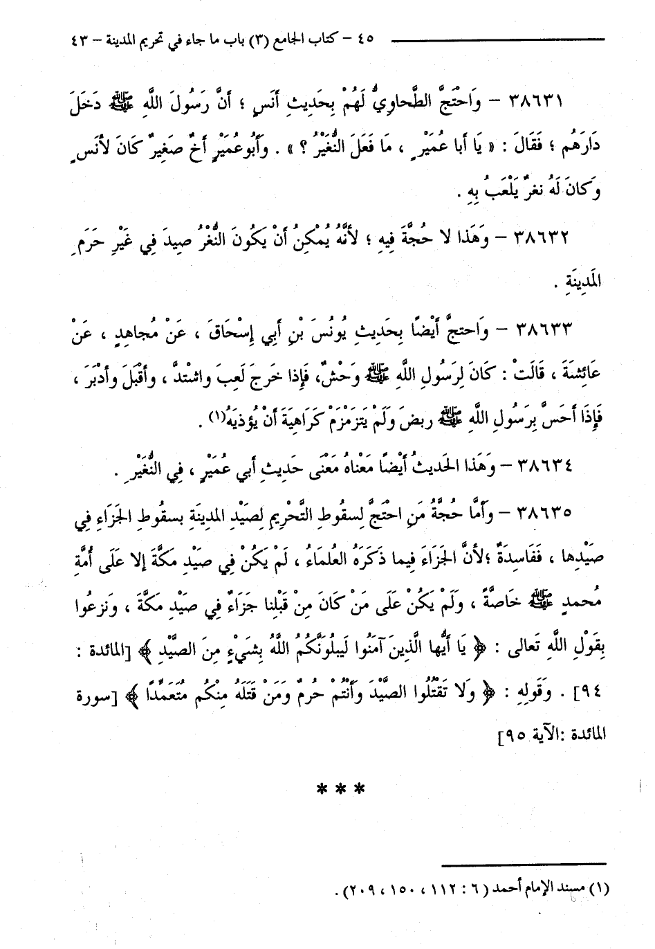 38632 - وَهَذَا لَا حُجَّةَ فِيهِ لِأَنَّهُ يُمْكِنُ أَنْ يَكُونَ النُّغَرُ صَيْدٌ فِي غَيْرِ حَرَمِ الْمَدِينَةِ.
