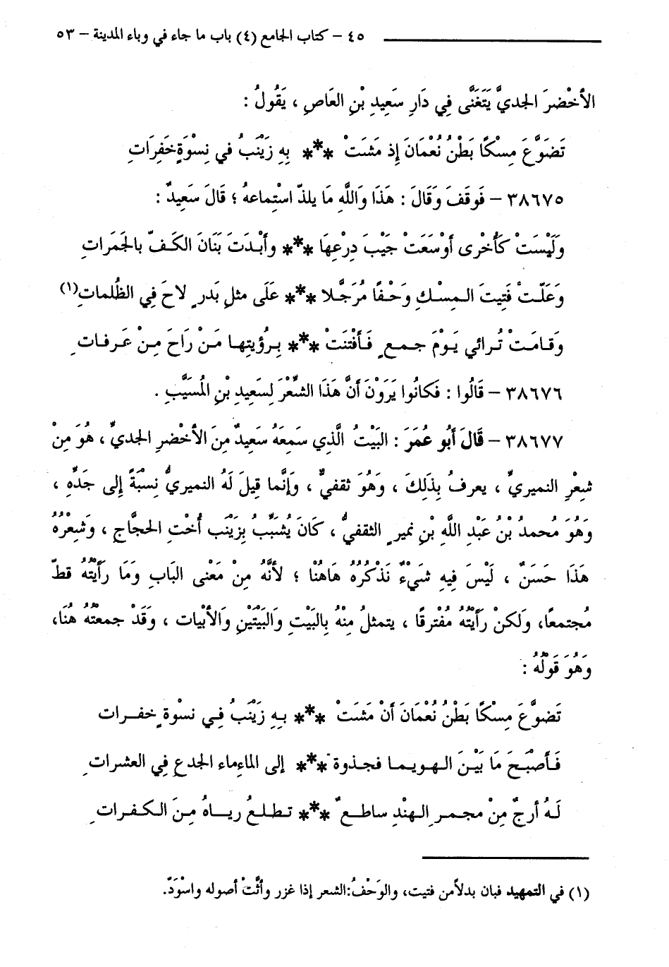 38676 - قَالُوا: فَكَانُوا يَرَوْنَ أَنَّ هَذَا الشِّعْرَ لِسَعِيدِ بْنِ الْمُسَيَّبِ.