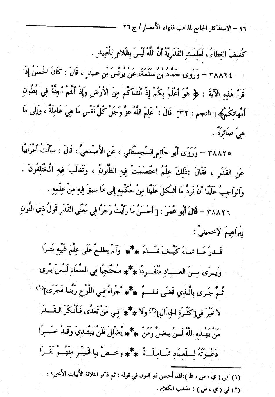 38826 - قَالَ أَبُو عُمَرَ: أَحْسَنُ مَا رَأَيْتُ رِجْزًا فِي مَعْنَى الْقَدَرِ قَوْلُ ذِي النُّونِ إِبْرَاهِيمَ الْإِخْمِينِيِّ: