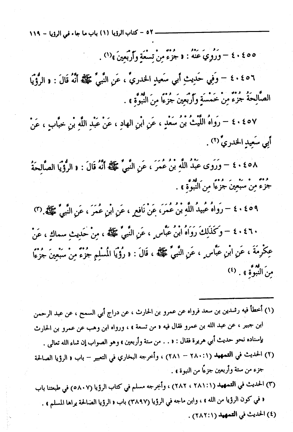 40458 - وَرَوَى عَبْدُ اللَّهِ بْنُ عُمَرَ، عَنِ النَّبِيِّ - صَلَّى اللَّهُ عَلَيْهِ وَسَلَّمَ - أَنَّهُ قَالَ: " الرُّؤْيَا الصَّالِحَةُ جُزْءٌ مِنْ سَبْعِينَ جُزْءًا مِنَ النُّبُوَّةِ ".
