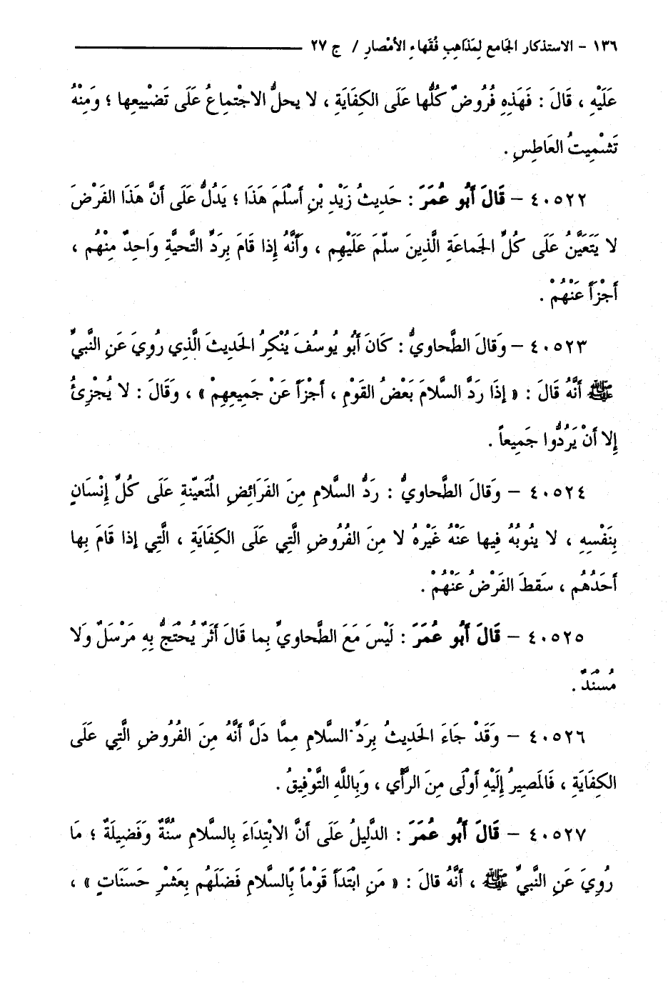 كتاب الاستذكار الجامع لمذاهب فقهاء الأمصار - ت: قلعجي (اسم الجزء: 27)