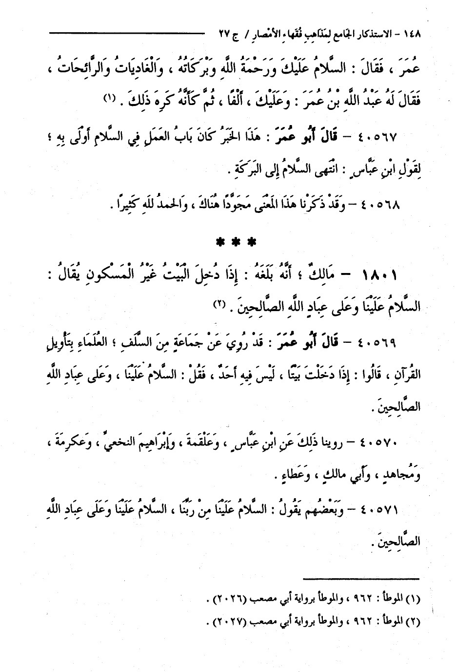 كتاب الاستذكار الجامع لمذاهب فقهاء الأمصار - ت: قلعجي (اسم الجزء: 27)