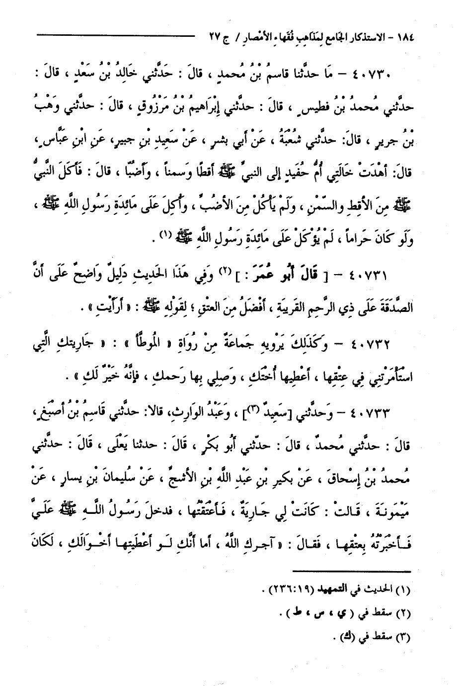 كتاب الاستذكار الجامع لمذاهب فقهاء الأمصار - ت: قلعجي (اسم الجزء: 27)