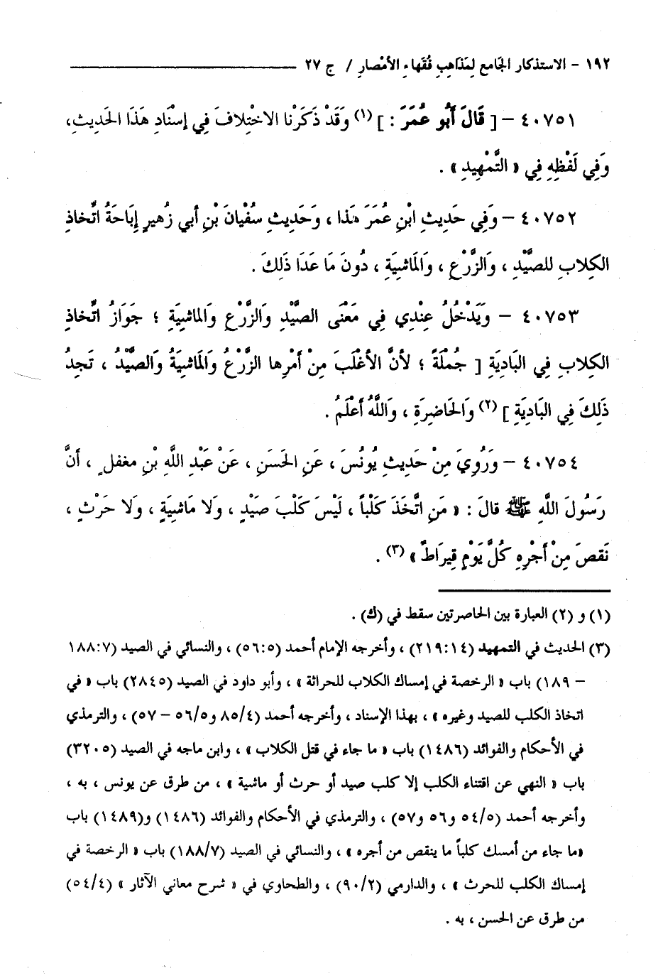 كتاب الاستذكار الجامع لمذاهب فقهاء الأمصار - ت: قلعجي (اسم الجزء: 27)