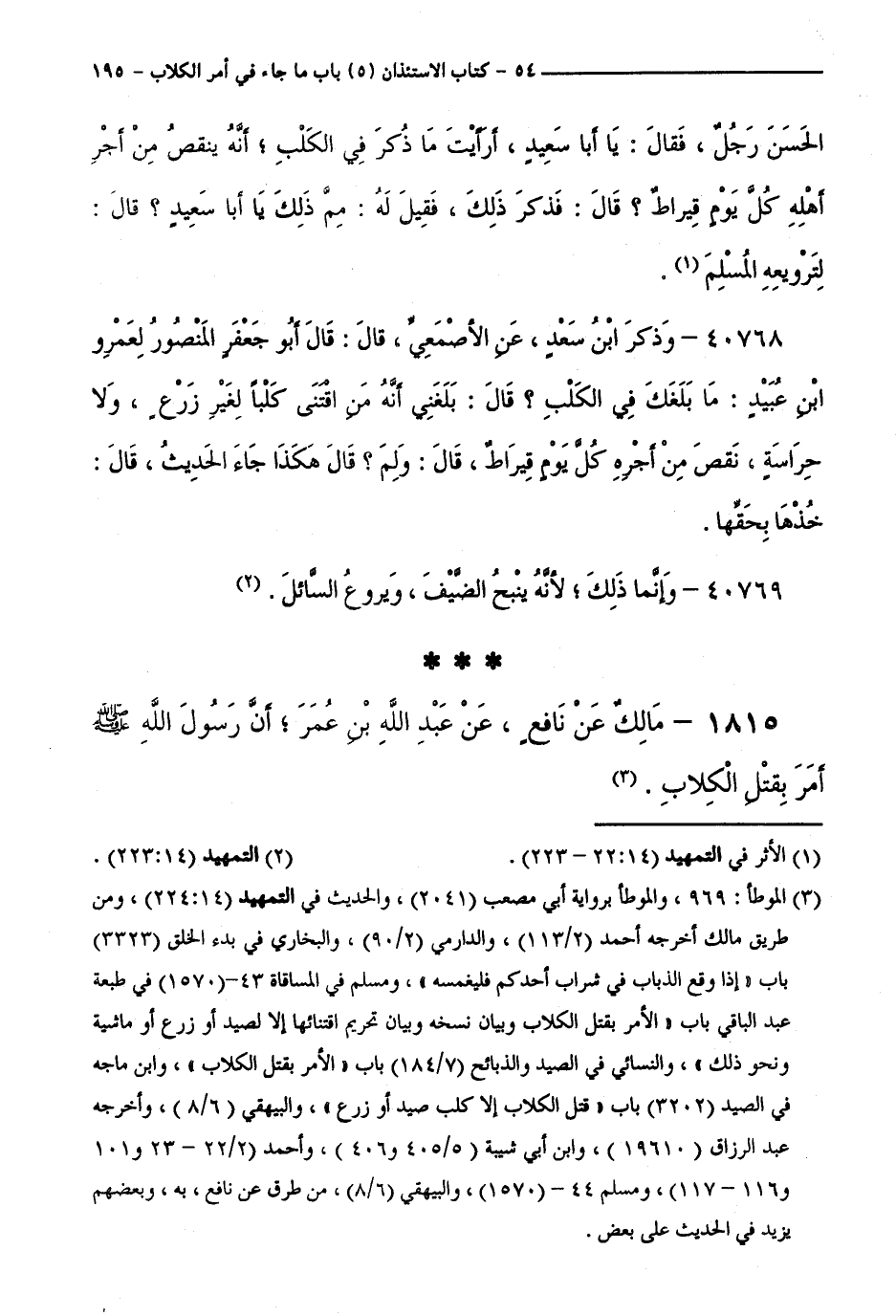 1815 - مَالِكٌ عَنْ نَافِعٍ، عَنْ عَبْدِ اللَّهِ بْنِ عُمَرَ ;أَنَّ رَسُولَ اللَّهِ - صَلَّى اللَّهُ عَلَيْهِ وَسَلَّمَ - أَمَرَ بِقَتْلِ الْكِلَابِ.